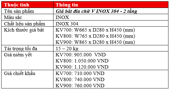 Quý khách vui lòng liên hệ ngay với ALPHA HOME để được tư vấn miễn phí và nhận báo giá tốt nhất cho Giá Bát Đĩa Chữ V 2 Tầng INOX 304!