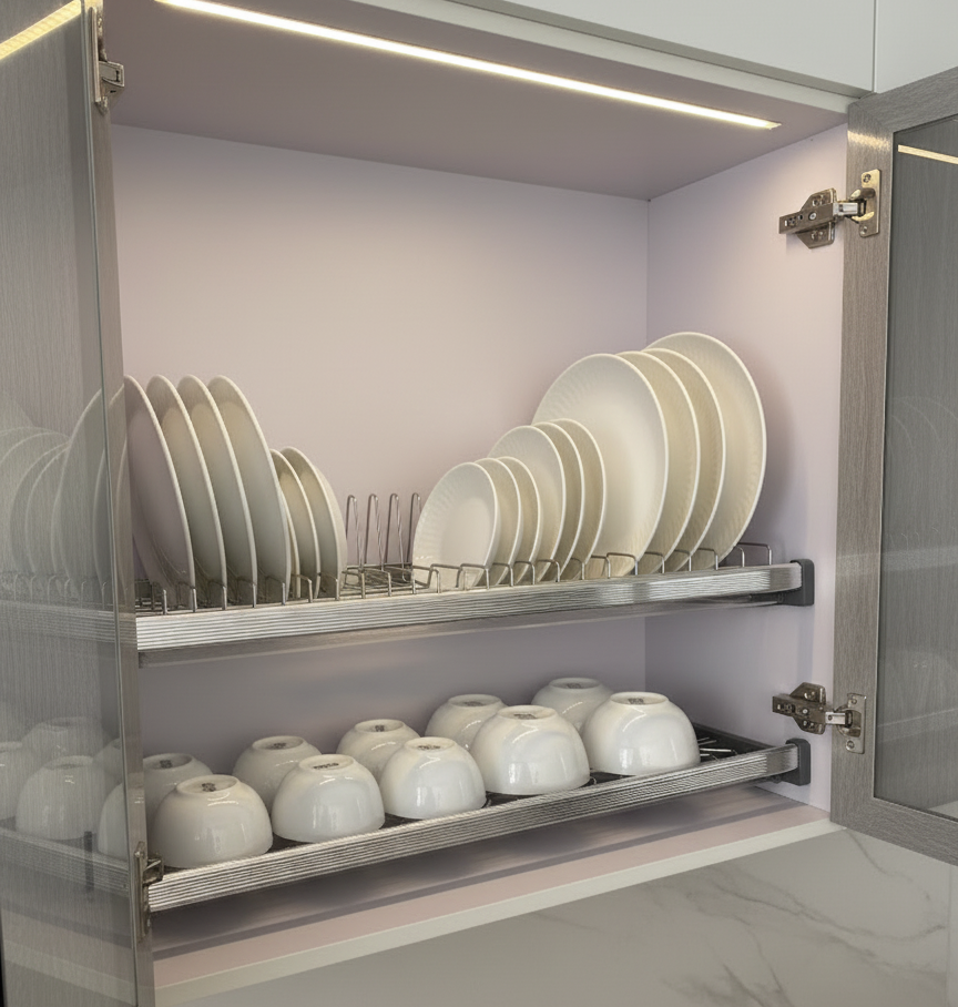 - Sắp xếp bát đĩa khoa học: Không còn tình trạng chồng chất, lộn xộn.