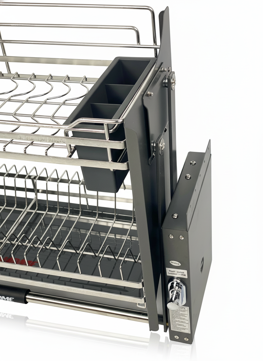 - Dễ dàng khi rửa và úp bát: Sau khi rửa, chỉ cần kéo nhẹ giá xuống để úp bát đĩa vào khay.