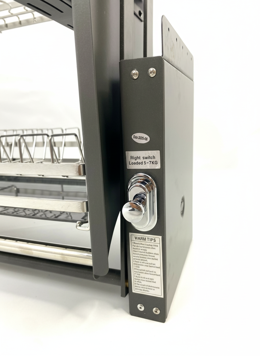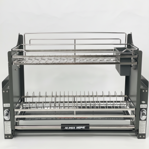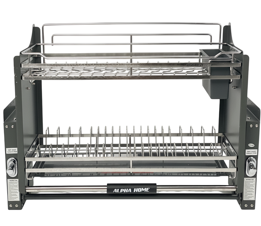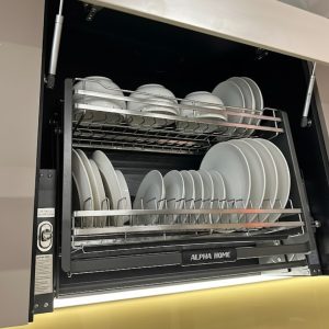 - Sử dụng: Kéo nhẹ tay cầm để hạ giá xuống, úp hoặc lấy bát đĩa, sau đó đẩy lên nhẹ nhàng để cố định.