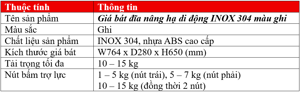 Quý khách vui lòng liên hệ ngay với ALPHA HOME để được tư vấn miễn phí và nhận báo giá tốt nhất cho Giá bát đĩa nâng hạ di động INOX 304 màu ghi!