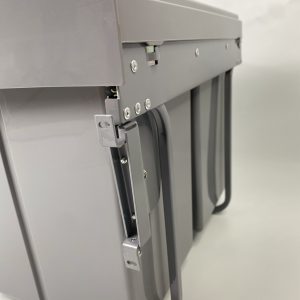 - Sử dụng: Mở cánh tủ, thùng rác sẽ tự động trượt ra ngoài. Đóng tủ để thùng rác ẩn hoàn toàn.