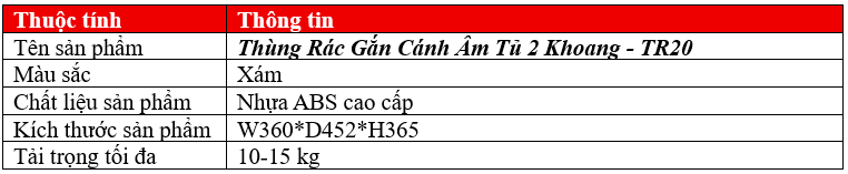 Quý khách vui lòng liên hệ ngay với ALPHA HOME để được tư vấn miễn phí và nhận báo giá tốt nhất cho thùng rác gắn cánh âm tủ – 2 khoang TR20!
