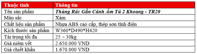 Quý khách vui lòng liên hệ ngay với ALPHA HOME để được tư vấn miễn phí và nhận báo giá tốt nhất cho thùng rác gắn cánh âm tủ – 2 khoang TR20!